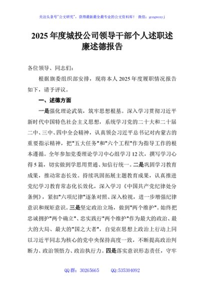 / 2025年度城投公司领导干部个人述职述廉述德报告