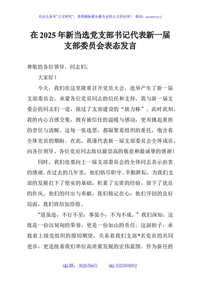 / 在2025年新当选党支部书记代表新一届支部委员会表态发言
