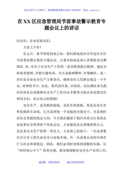 / 在XX区应急管理局节前事故警示教育专题会议上的讲话