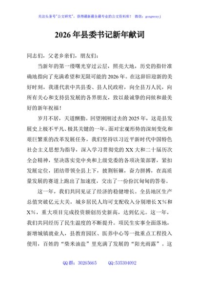 / 2026年县委书记新年献词