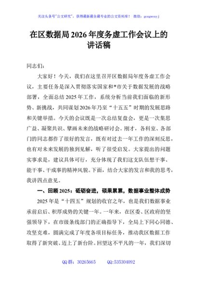 / 在区数据局2026年度务虚工作会议上的讲话稿