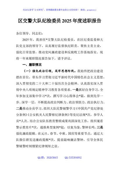 / 区交警大队纪检委员2025年度述职报告