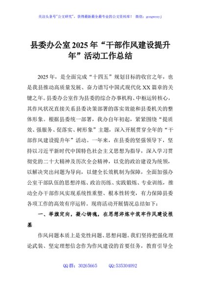 / 县委办公室2025年“干部作风建设提升年”活动工作总结
