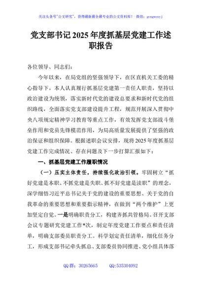 / 党支部书记2025年度抓基层党建工作述职报告