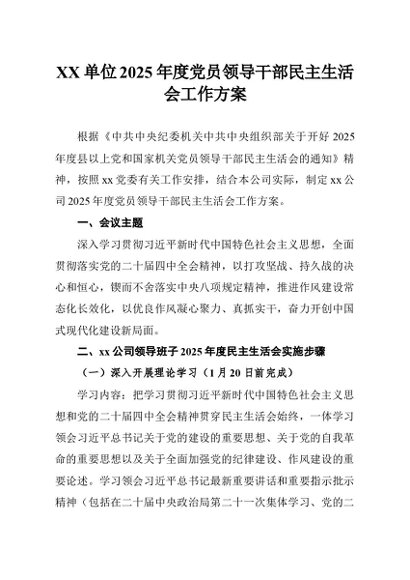 / 2025年度党员领导干部民主生活会工作方案