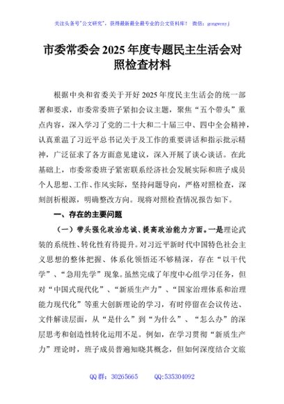 / 市委常委会2025年度专题民主生活会对照检查材料