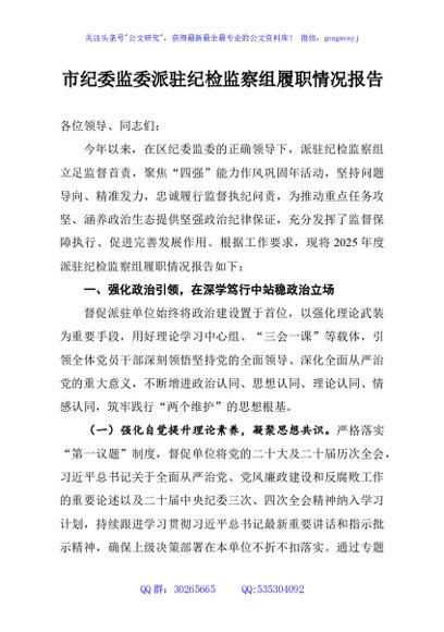 / 市纪委监委派驻纪检监察组履职情况报告