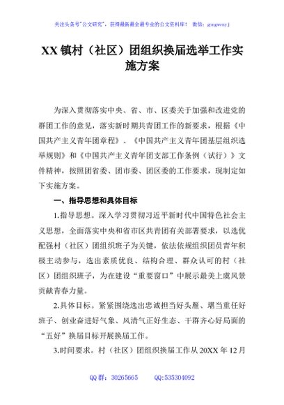 / XX镇村(社区)团组织换届选举工作实施方案
