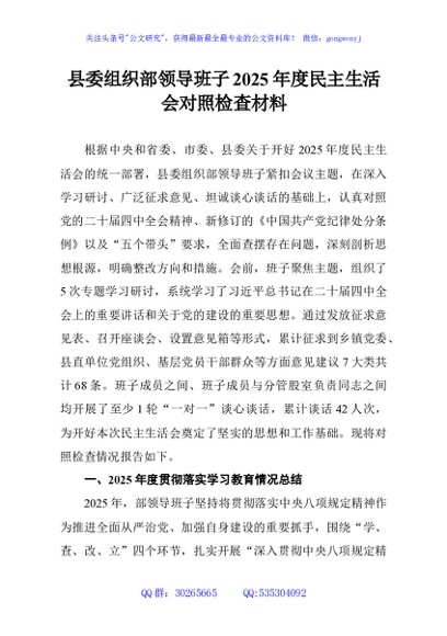 / 县委组织部领导班子2025年度民主生活会对照检查材料