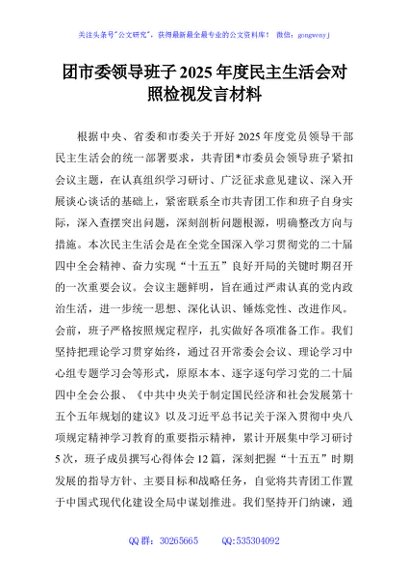 / 团市委领导班子2025年度民主生活会对照检视发言材料
