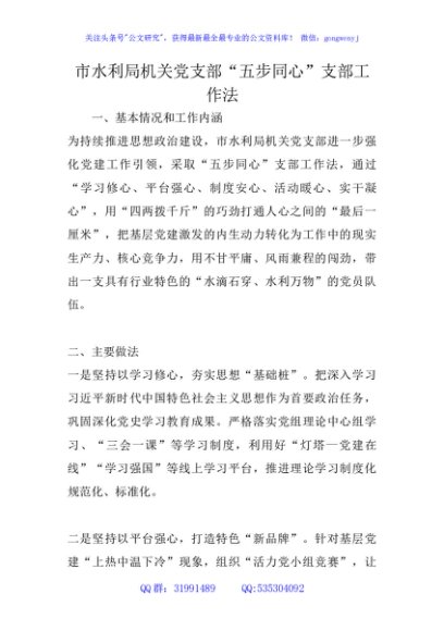 / 市水利局机关党支部“五步同心”支部工作法(党建品牌)
