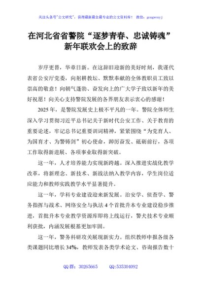 / 在河北省省警院“逐梦青春、忠诚铸魂”新年联欢会上的致辞