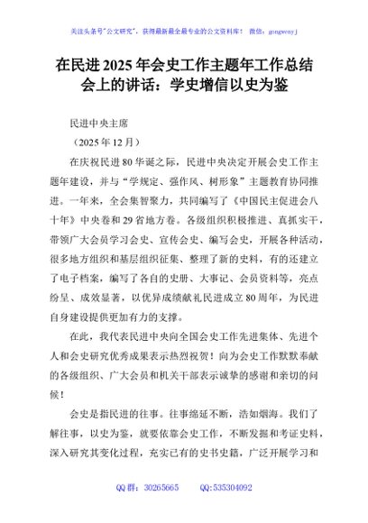 / 在民进2025年会史工作主题年工作总结会上的讲话:学史增信以史为鉴docx