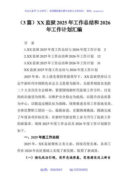 / (3篇)XX监狱2025年工作总结和2026年工作计划汇编
