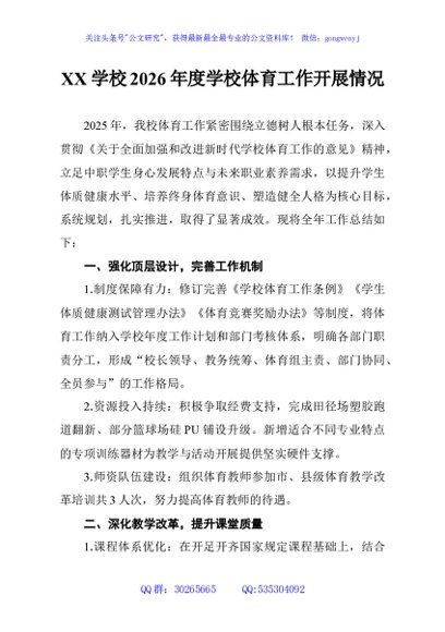 / XX学校2026年度学校体育工作开展情况