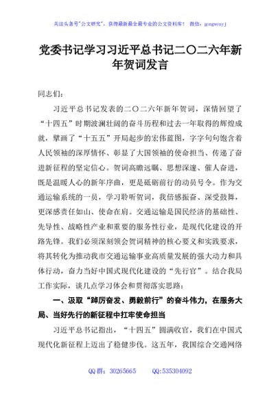 / 党委书记学习习近平总书记二〇二六年新年贺词发言