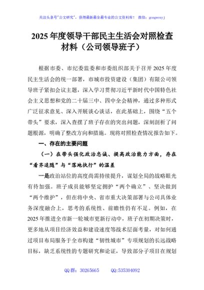 / 2025年度领导干部民主生活会对照检查材料(公司领导班子)