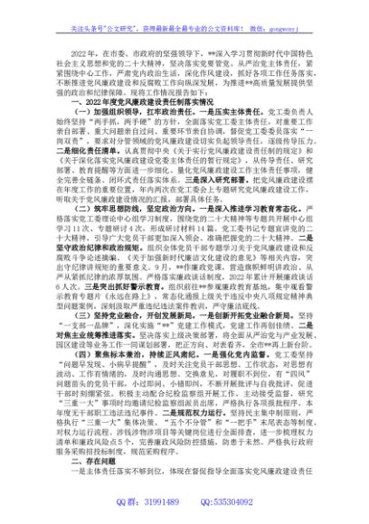/ 关于2022年度党风廉政建设责任制落实情况的报告