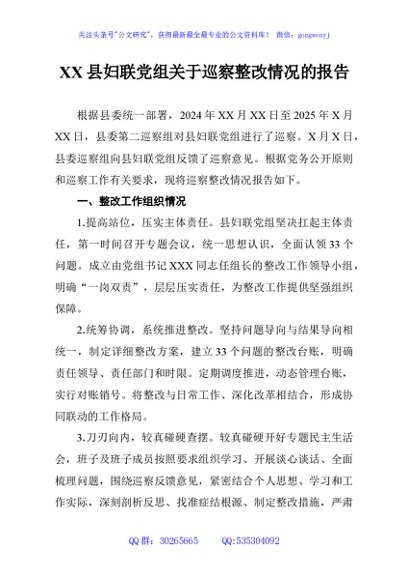 / XX县妇联党组关于巡察整改情况的报告