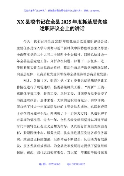 / XX县委书记在全县2025年度抓基层党建述职评议会上的讲话