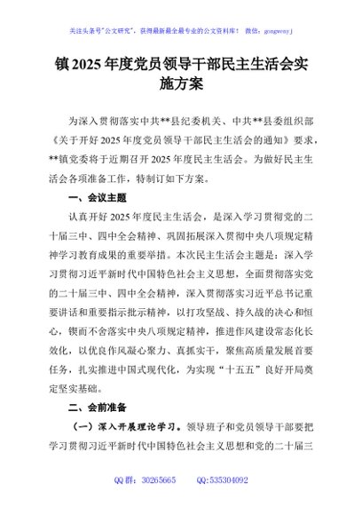 / 镇2025年度党员领导干部民主生活会实施方案