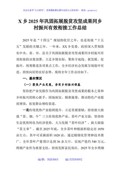 / X乡2025年巩固拓展脱贫攻坚成果同乡村振兴有效衔接工作总结