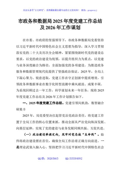 / 市政务和数据局2025年度党建工作总结及2026年工作谋划