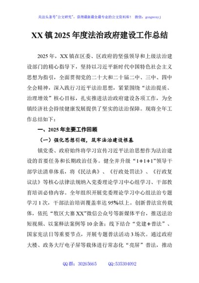 / XX镇2025年度法治政府建设工作总结