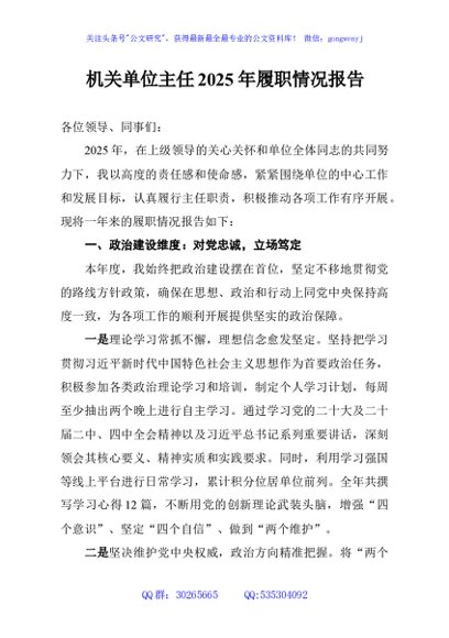/ 机关单位主任2025年履职情况报告