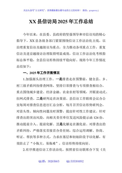 / XX县信访局2025年工作总结