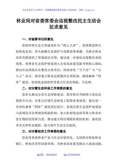 / 林业局对省委常委会巡视整改民主生活会征求意见