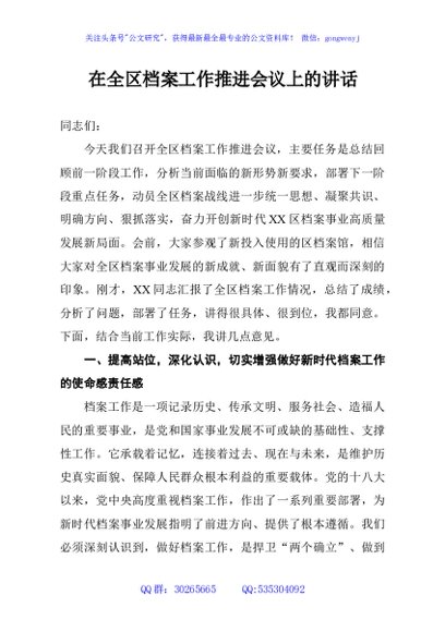 / 在全区档案工作推进会议上的讲话