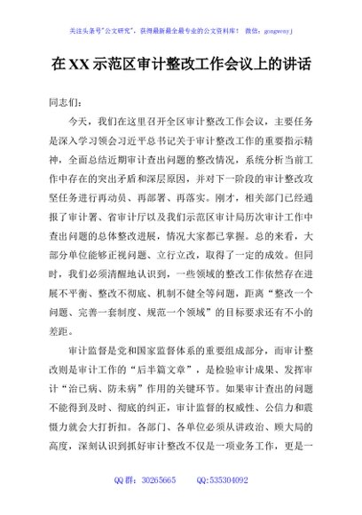 / 在XX示范区审计整改工作会议上的讲话