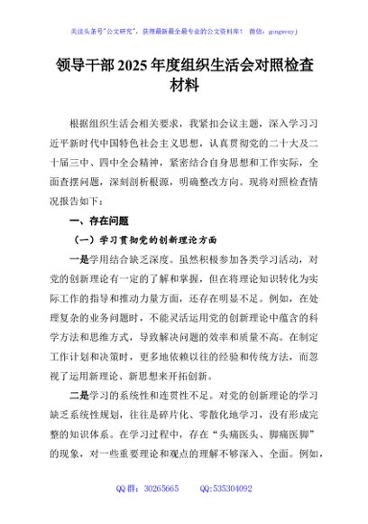 / 领导干部2025年度组织生活会对照检查材料