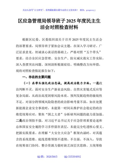 / 区应急管理局领导班子2025年度民主生活会对照检查材料