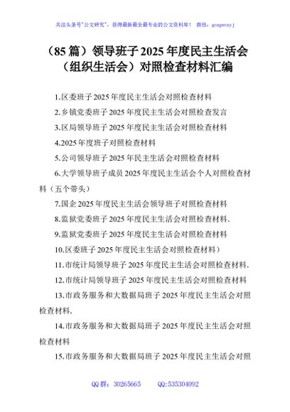 / (85篇)领导班子2025年度民主生活会(组织生活会)对照检查材料汇编