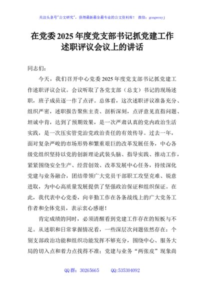 / 在党委2025年度党支部书记抓党建工作述职评议会议上的讲话