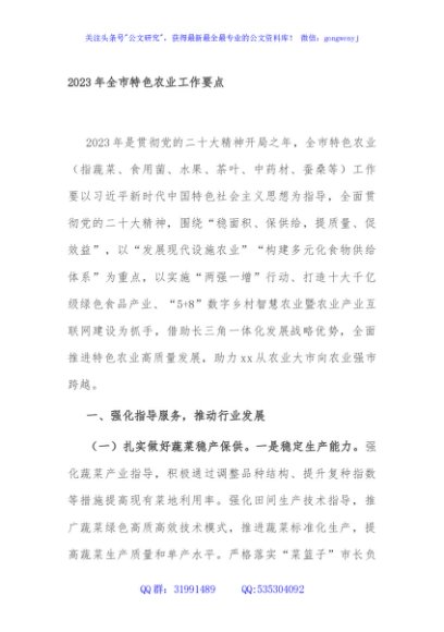 / 2023年全市特色农业工作要点