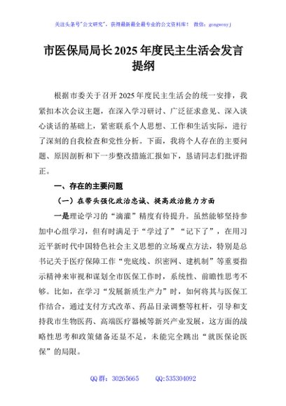 / 市医保局局长2025年度民主生活会发言提纲