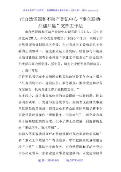 / 市自然资源和不动产登记中心“事企联动·共建共赢”支部工作法(党建品牌)