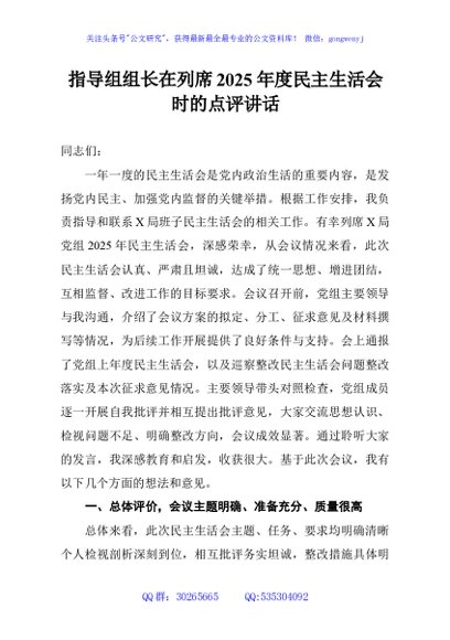/ 指导组组长在列席2025年度民主生活会时的点评讲话