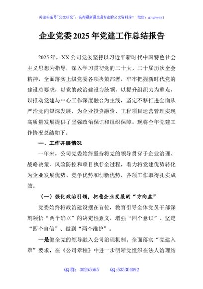 / 企业党委2025年党建工作总结报告