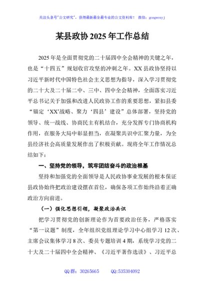 / 某县政协2025年工作总结