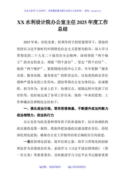 / XX水利设计院办公室主任2025年度工作总结