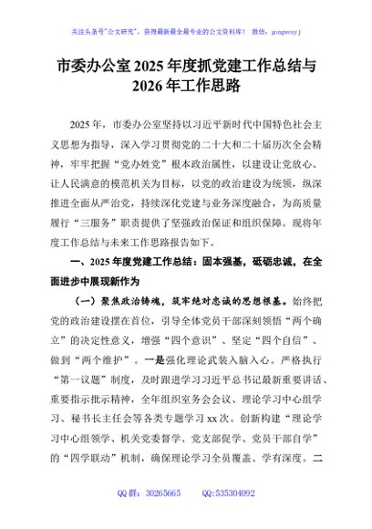 / 市委办公室2025年度抓党建工作总结与2026年工作思路