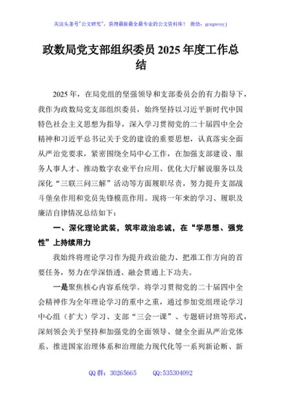 / 政数局党支部组织委员2025年度工作总结
