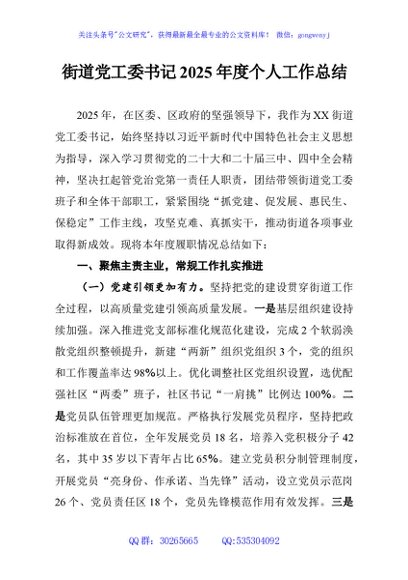 未生成预览图,长按二维码添加 街道党工委书记2025年度个人工作总结 - 公文研究