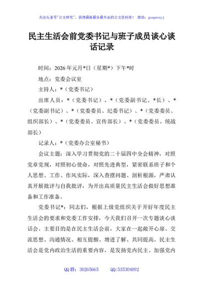 未生成预览图,长按二维码添加 民主生活会前党委书记与班子成员谈心谈话记录 - 公文研究