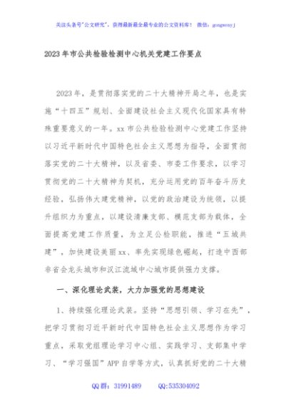 / 2023年市公共检验检测中心机关党建工作要点