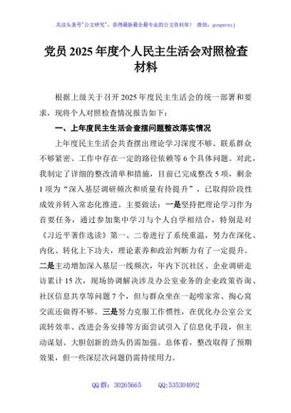 未生成预览图,长按二维码添加 党员2025年度个人民主生活会对照检查材料 - 公文研究